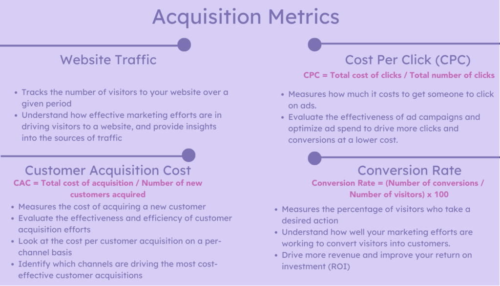 Acquisition Metrics: Website Traffic, CPC, CAC, Conversion Rate