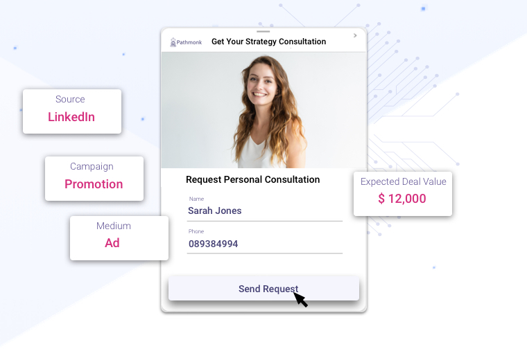 Landing – Use Case Marketing Lead Qualification & Conversion for Marketers You define the goal, Pathmonk does the rest Book a Demo Convert more visitors into leads & leads into sales meetings Increase website conversions with AI Plug Artificial Intelligence in your website to boost conversions Personalize the experience based on Ad Source Running various campaigns and want one website that adapts the content based on campaigns? You came to the right spot. Know which channels bring qualified leads Get a straightforward answer to know the channels that bring qualified leads The world's #1Revenue Growth Engine Easy integrationwith your workflow More qualified leads in your existing CRM, subscribers in your Email automation tool & meetings in your calendar What Pathmonk's clients are getting More Revenue Opportunity + 0 % Less Qualification Time - 0 % Preview improvements Ready to convert more visitors into qualified opportunities? Book a Demo
